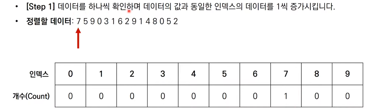 count[array[i]] += 1 # 각 데이터에 해당하는 인덱스의 값 증가