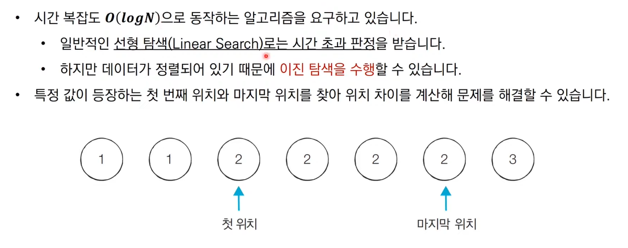 <문제> 정렬된 배열에서 특성 수의 개수 구하기: 답안 예시 (Python)