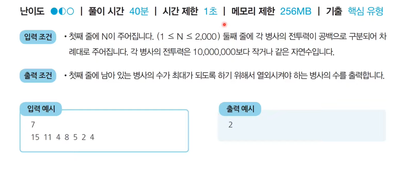 <문제> 병사 배치하기: 문제 해결 아이디어