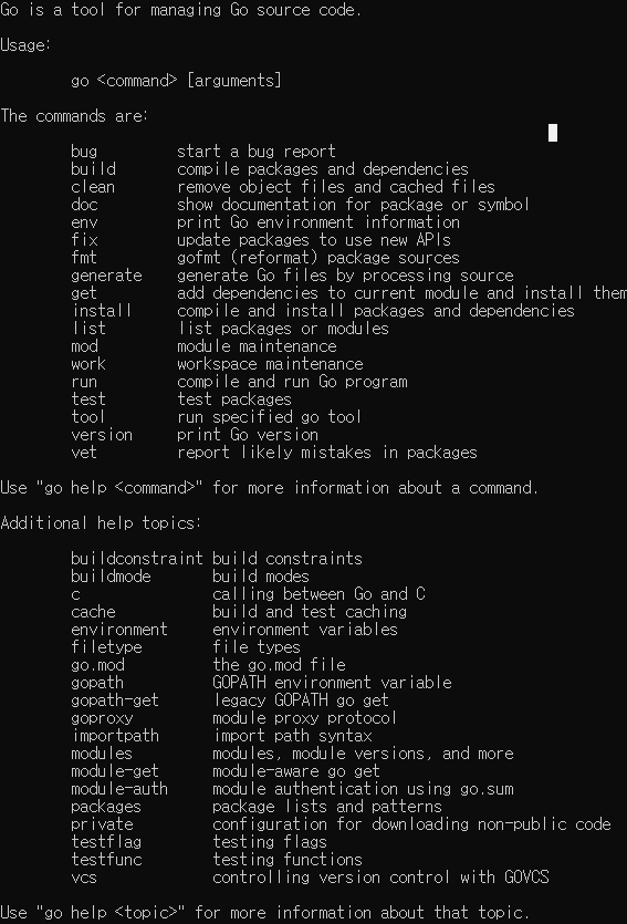 다음섹션에서는 Go의 기능들 몇가지에 대해 알아볼 것이다. 모든 기능을 다 배우진 않을 것이다.