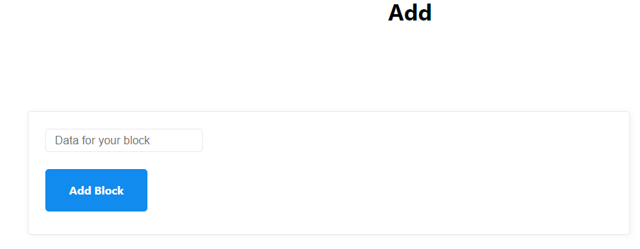 <input type="text" placeholder="Data for your block" required name="blockData" />