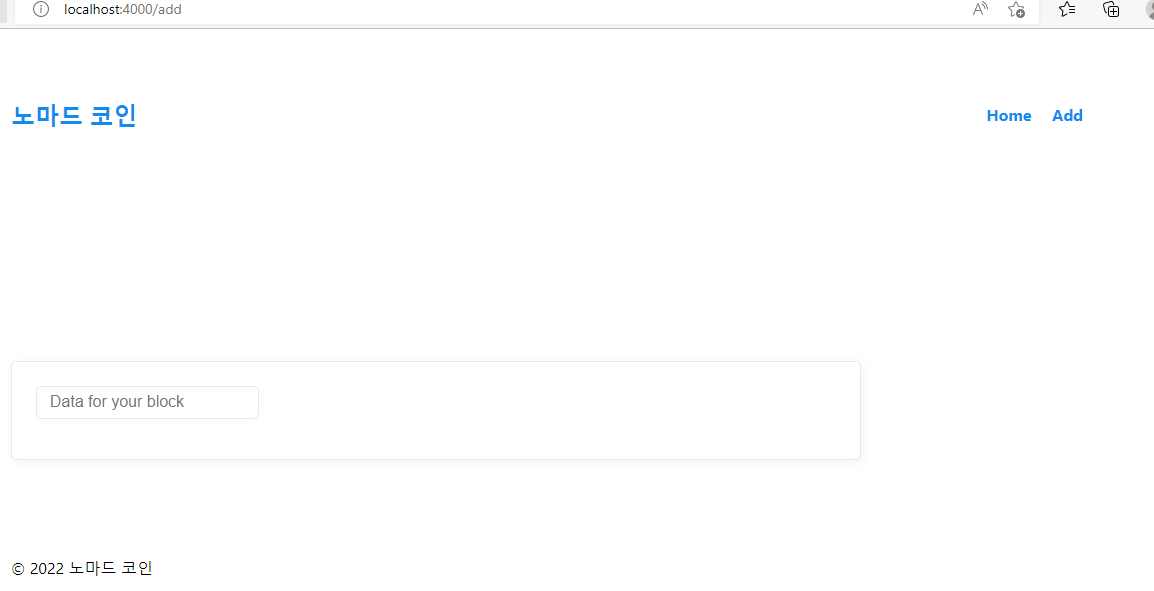 <input type="text" placeholder="Data for your block" required />
