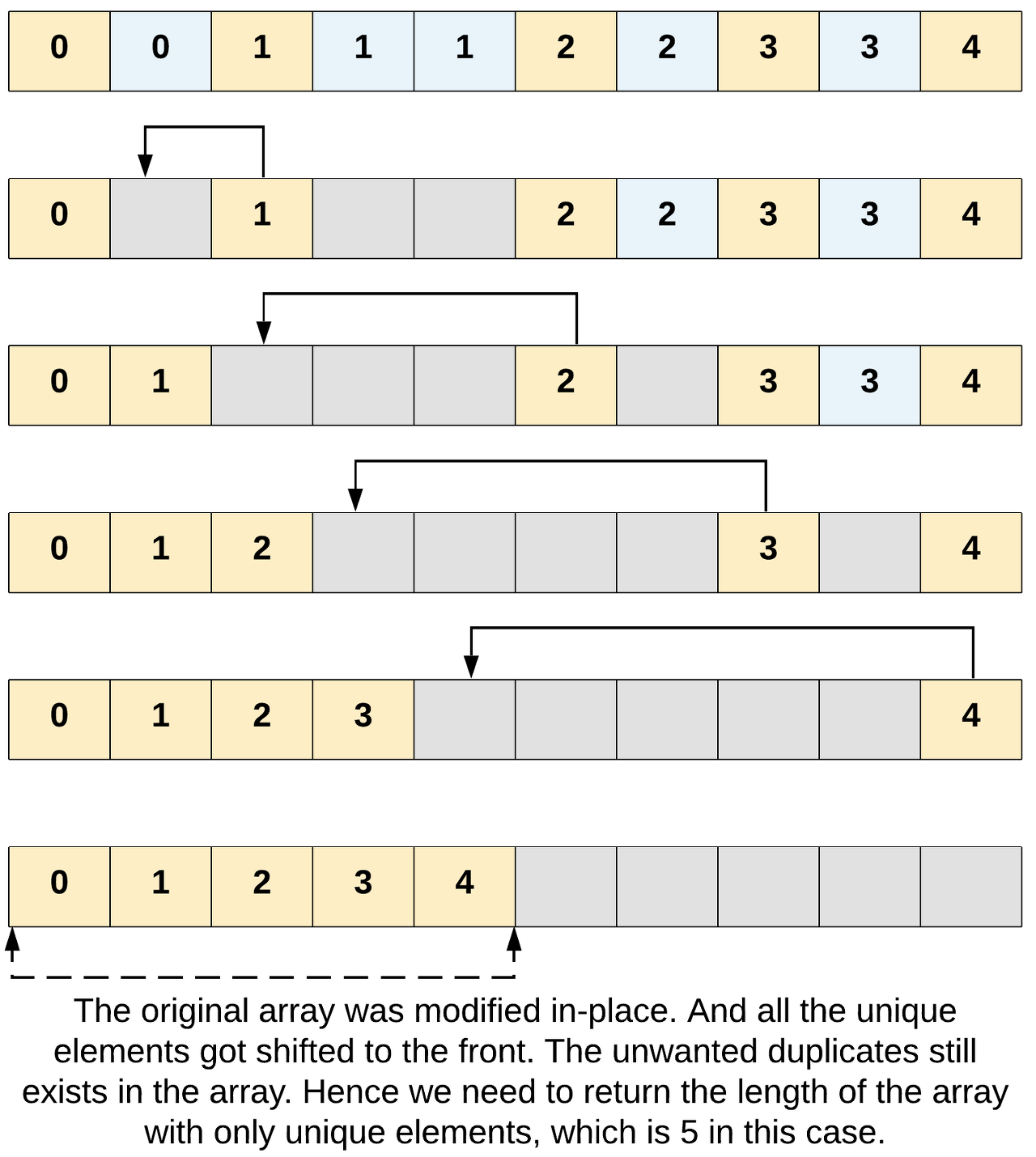 // Use the two pointer technique to remove the duplicates in-place.
