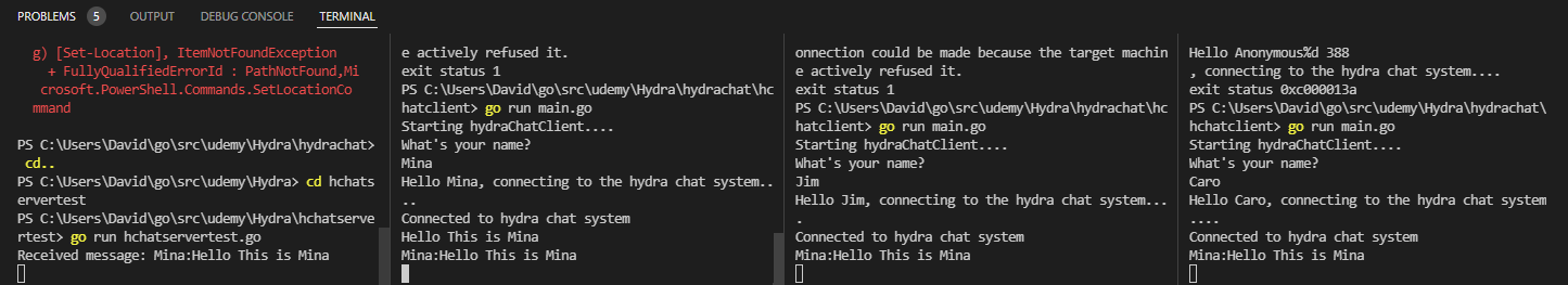 We now have full functional chat system that makes good use of go's features and design patterns.