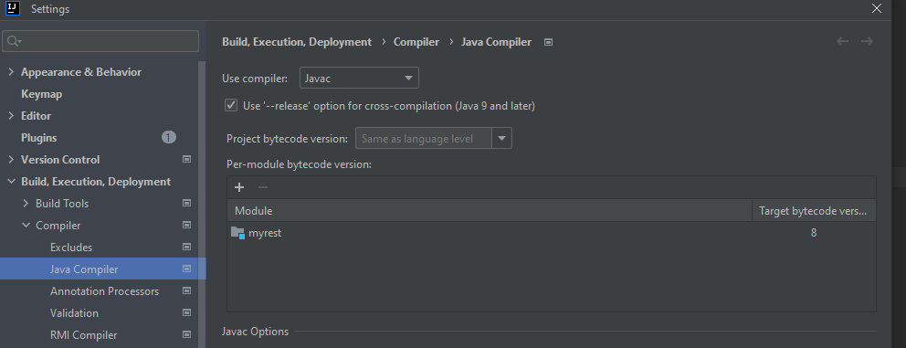 File -> Settings -> Build, Execution, Deployment -> Compiler -> Java Compiler -> 8 also there