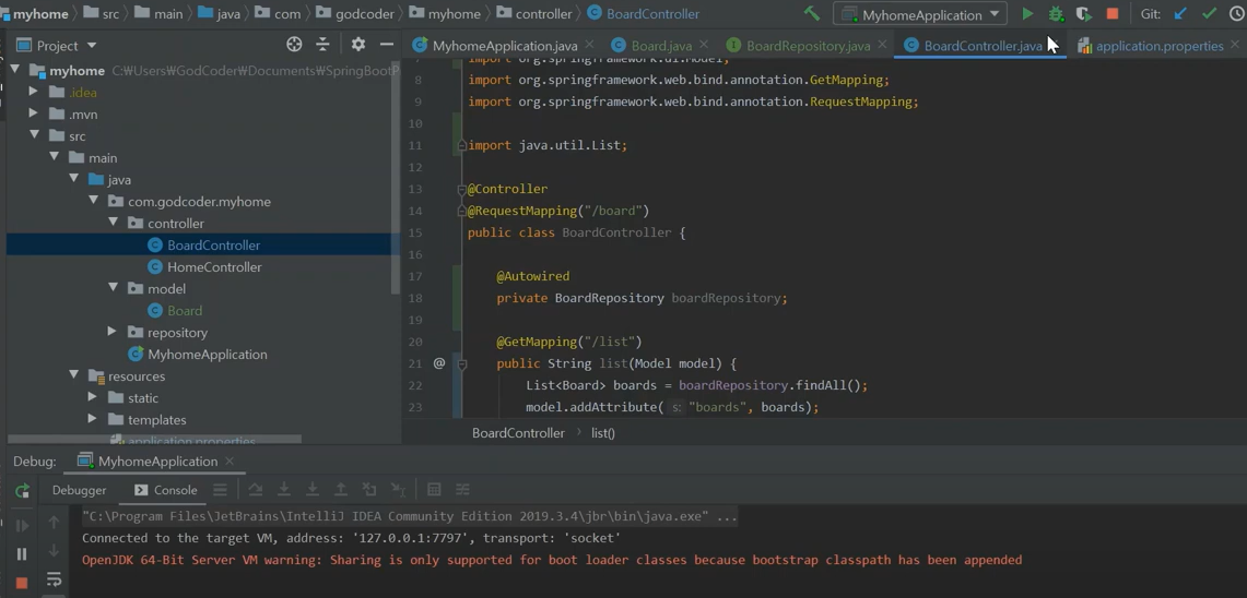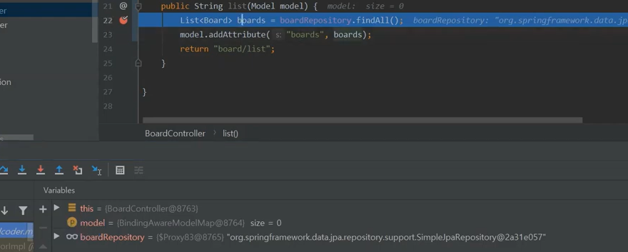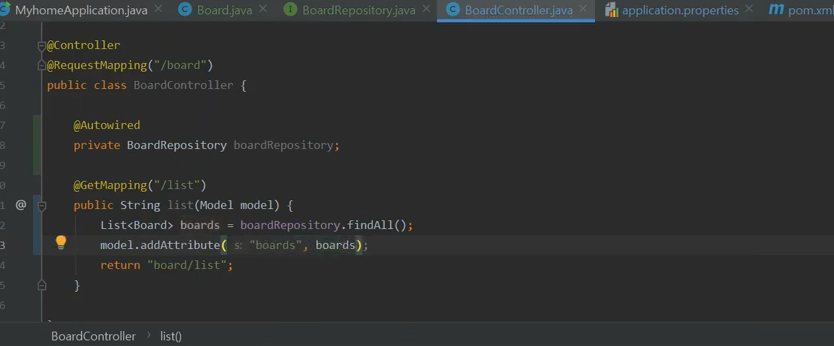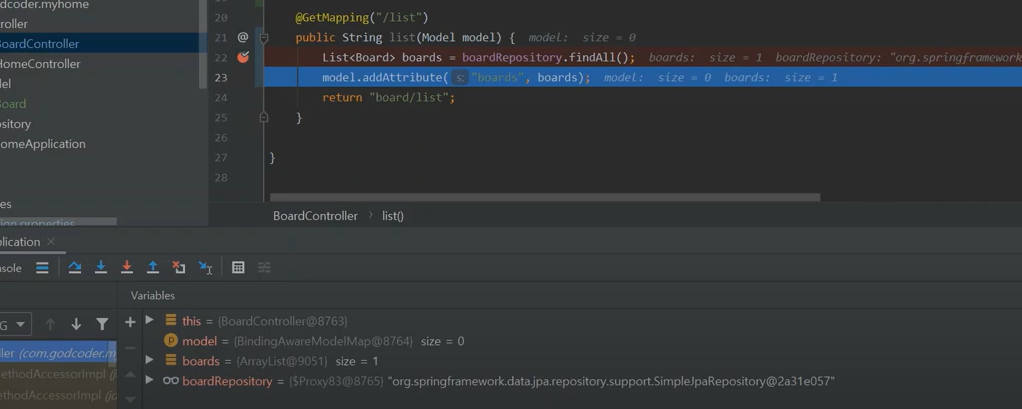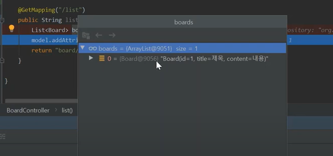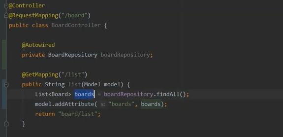 게시판에 어떤 데이터 값을 넘겨주고 싶다고 하면 파라메터에 모델을 추가하면 됐다.