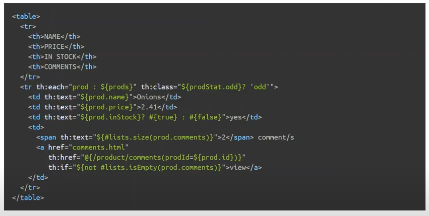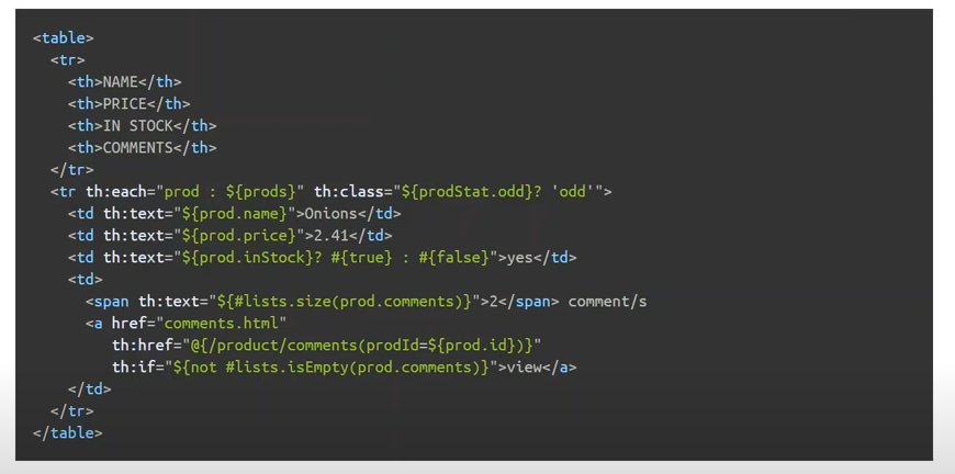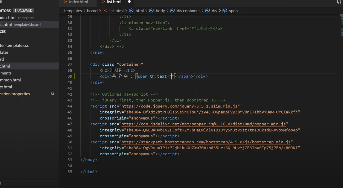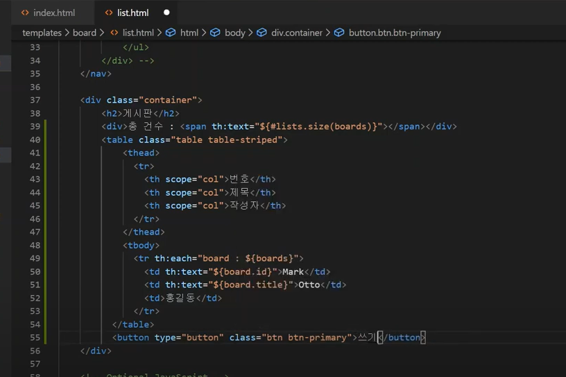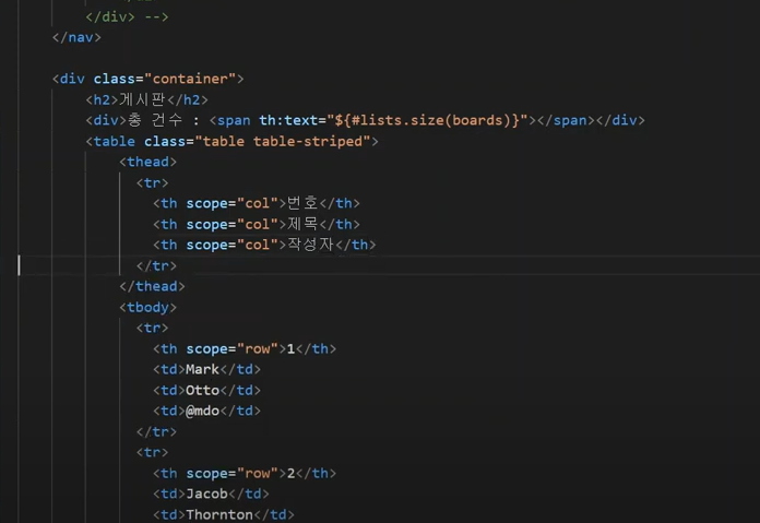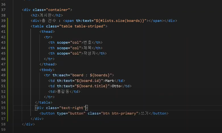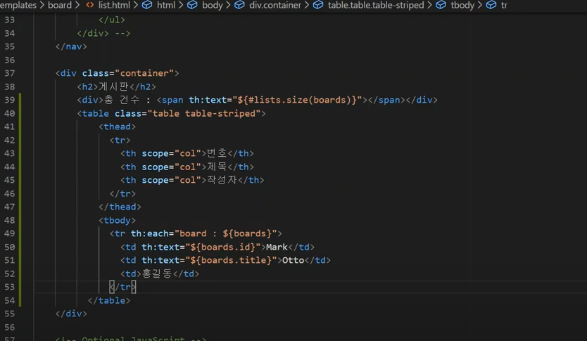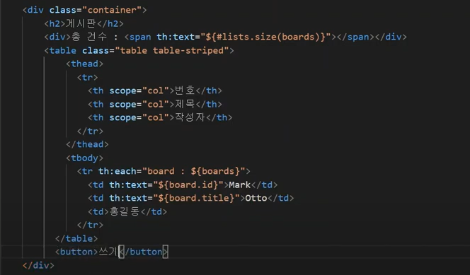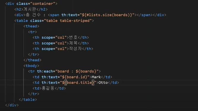 리스트에 대한 데이터를 조작하기 위해서는 타임리프의 문법을 사용해야 한다.