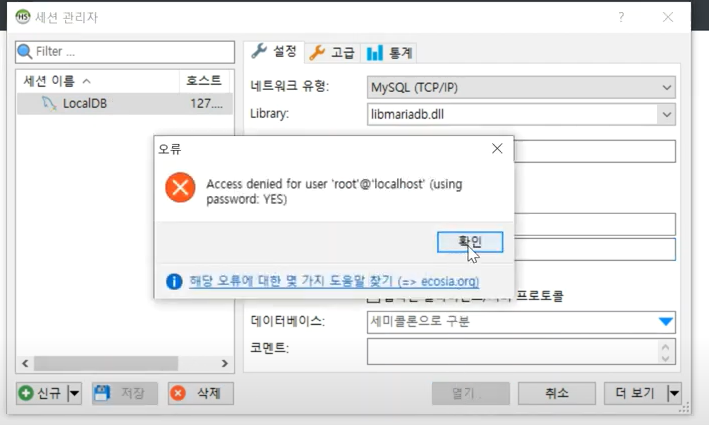 비밀번호를 잘못임력하면 에러 나옴