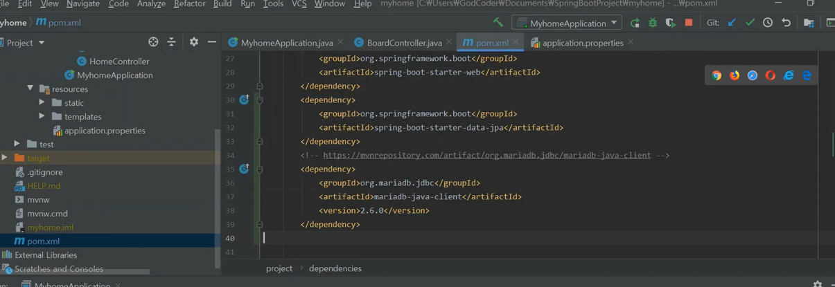 mariaDB를 연결하기 전에 의존성 연결을 하나 더 할 것이다.