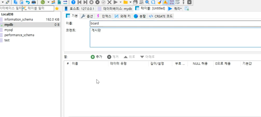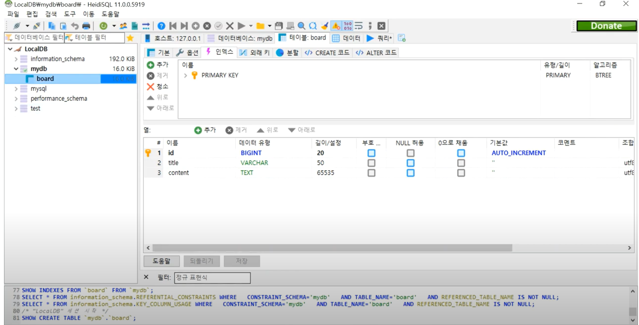 게시판을 만들기 위해서는 DB가 필요하다.