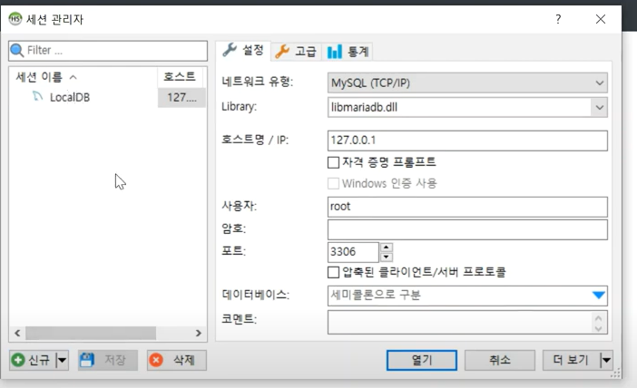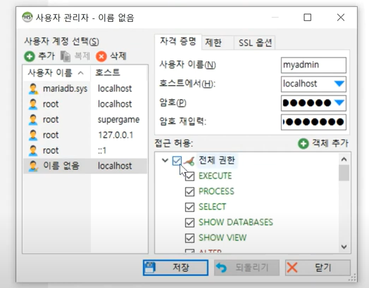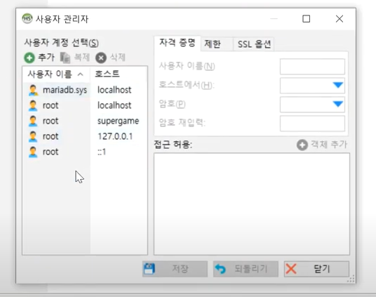 이 계정으로 해도 상관은 없겠지만 실제로는 루트계정