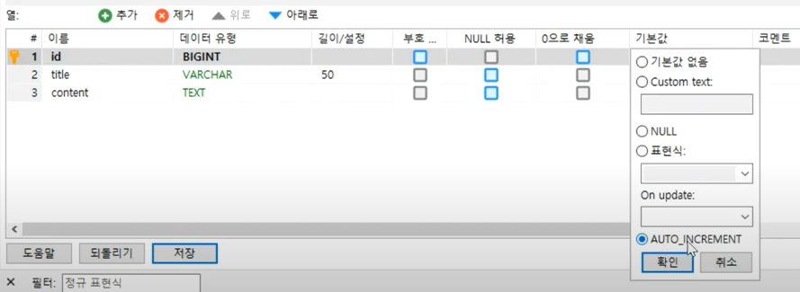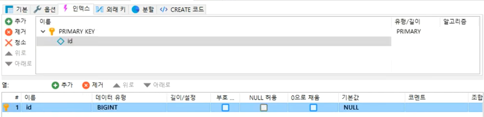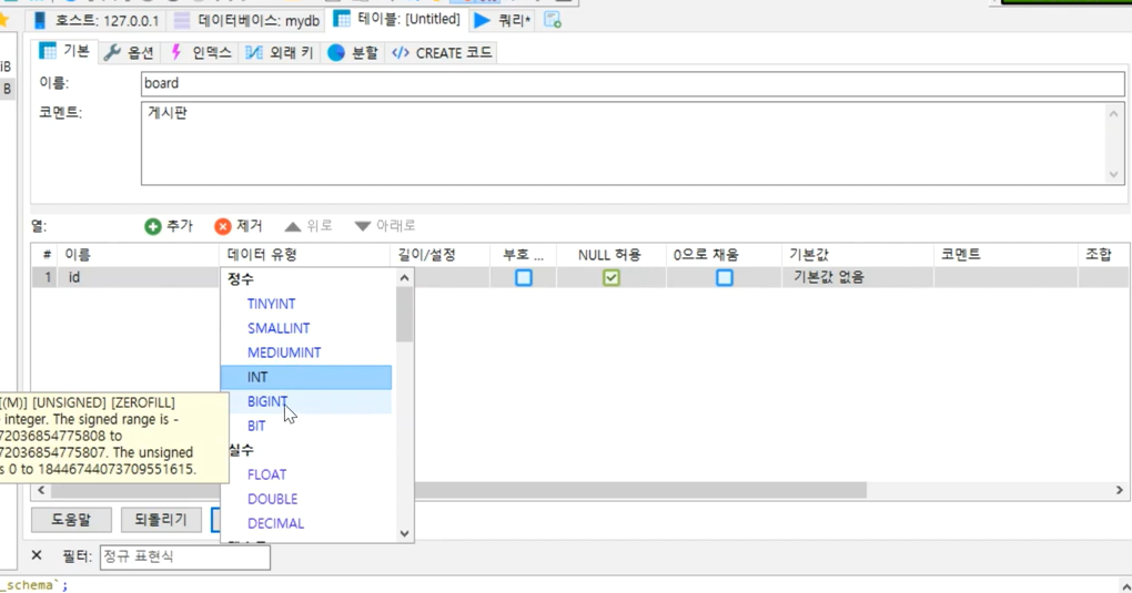 Java의 Long 자료형과 대응이 되는 BIGINT로 선택