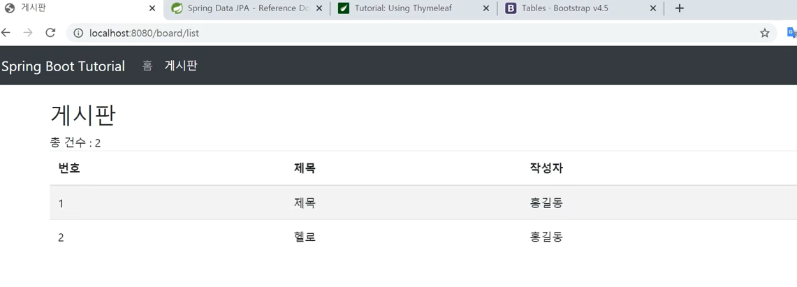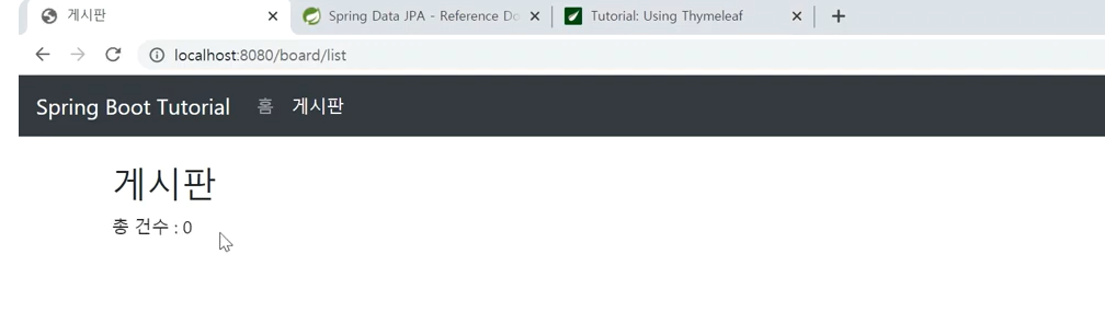 boards를 넣으면 건수가 조회가 될 것이다.