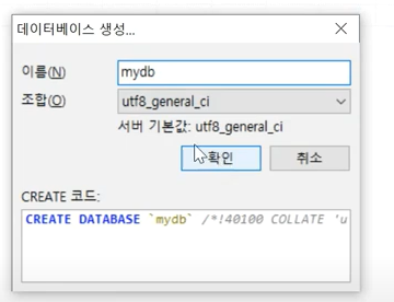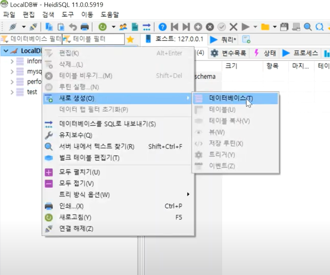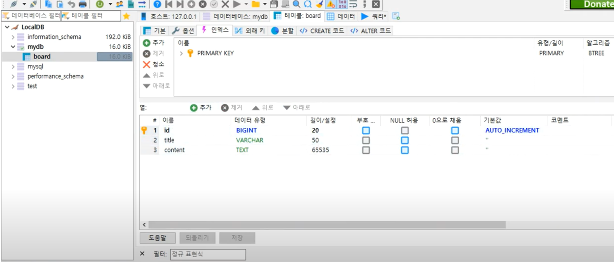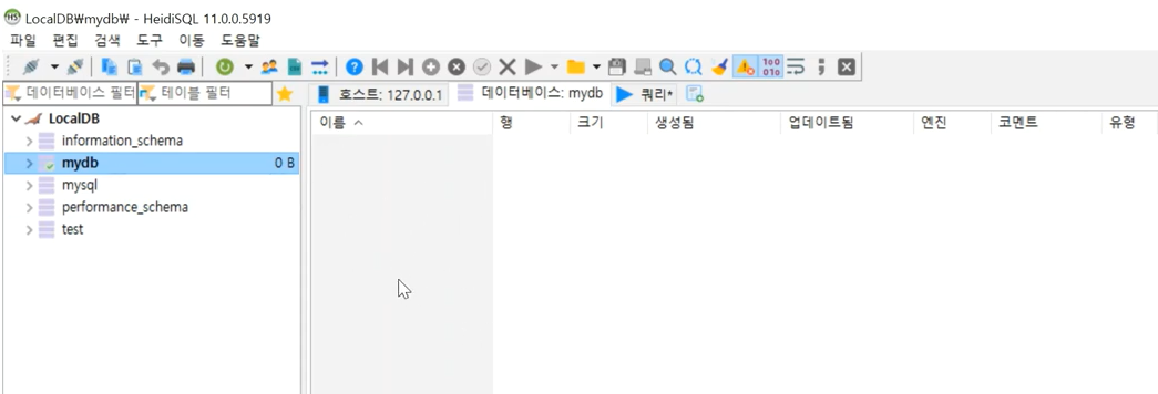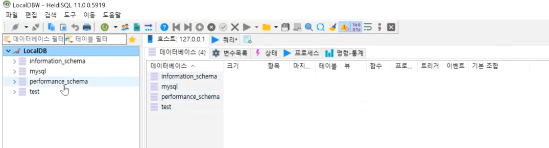 기본적으로 테스트 데이터베이스가 설정이 되어있음.