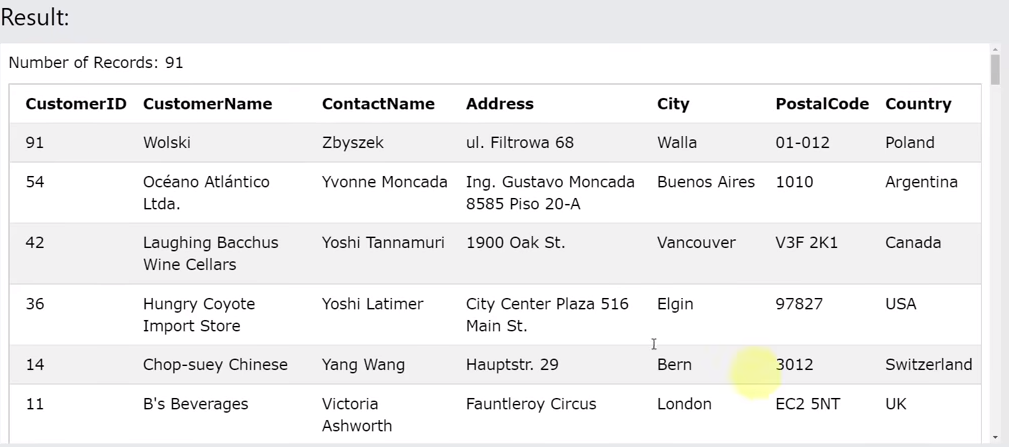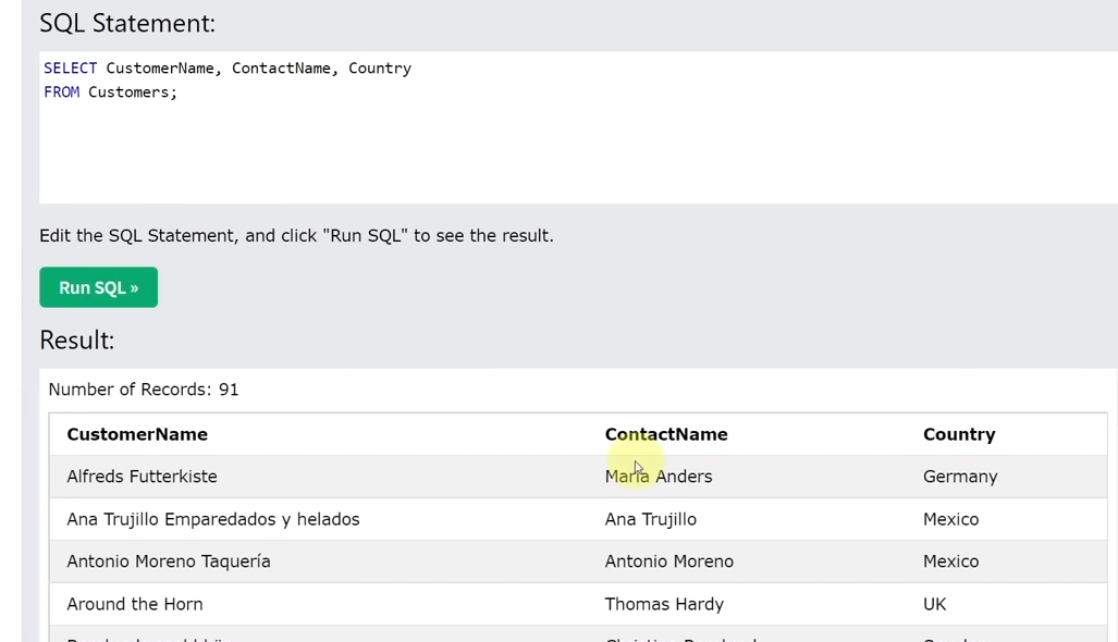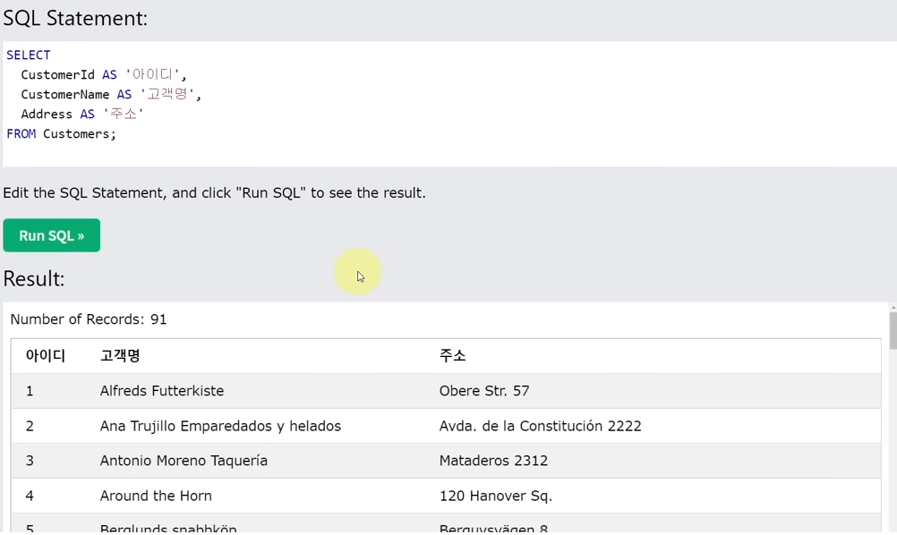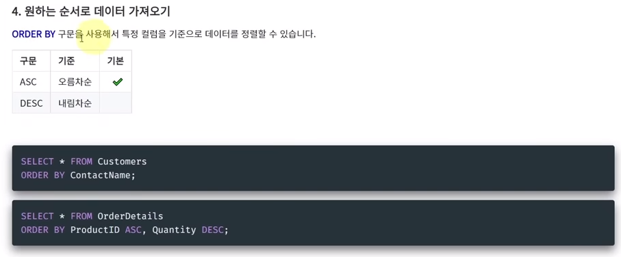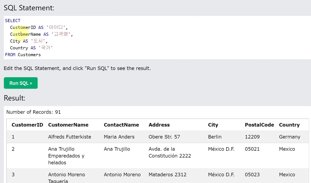 안적혀 있다면 ContactName을 기준으로 오름차순을 한다는 것이다.