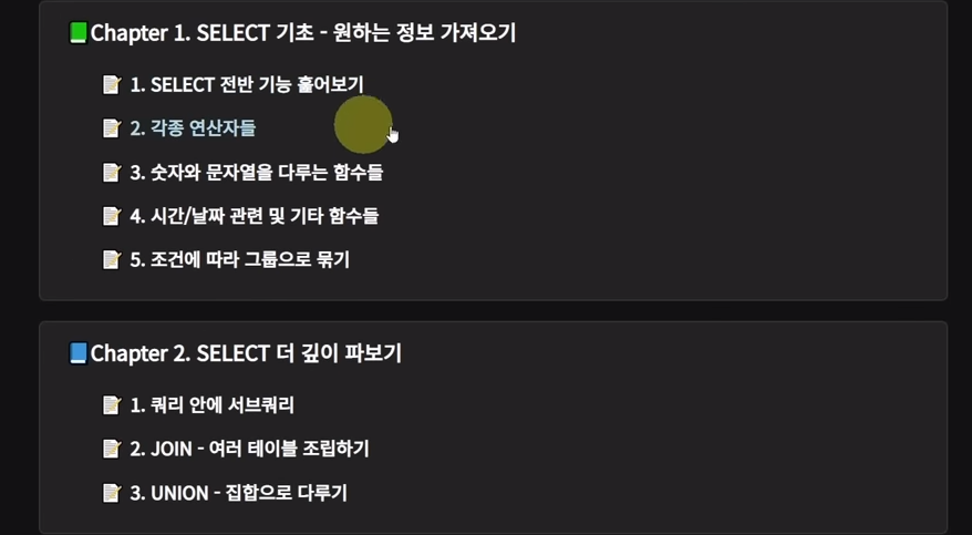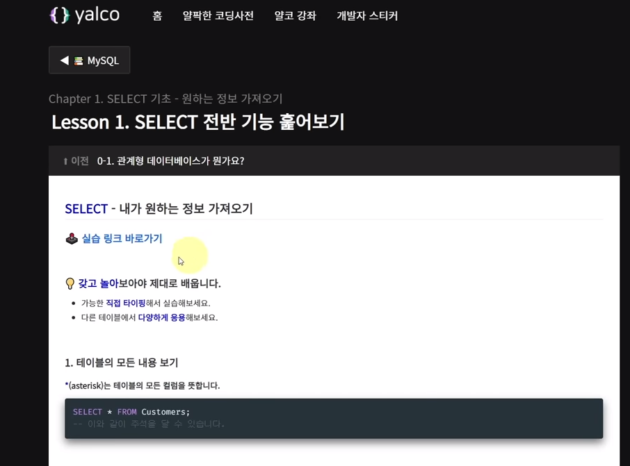 | (1-2) MySQL 데이터베이스 강좌 - 각종 연산자들 (0) | 2023.11.15 |