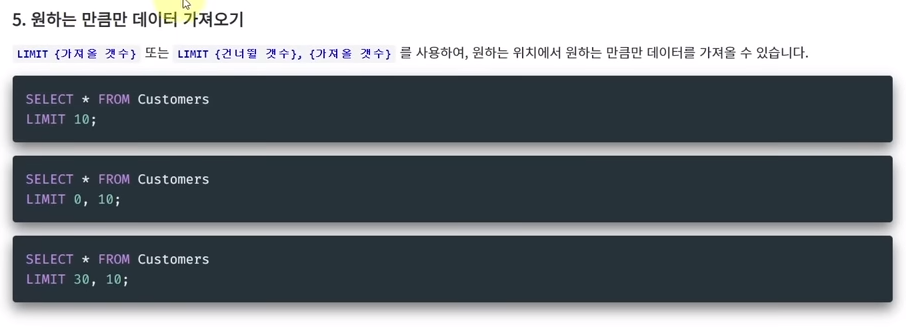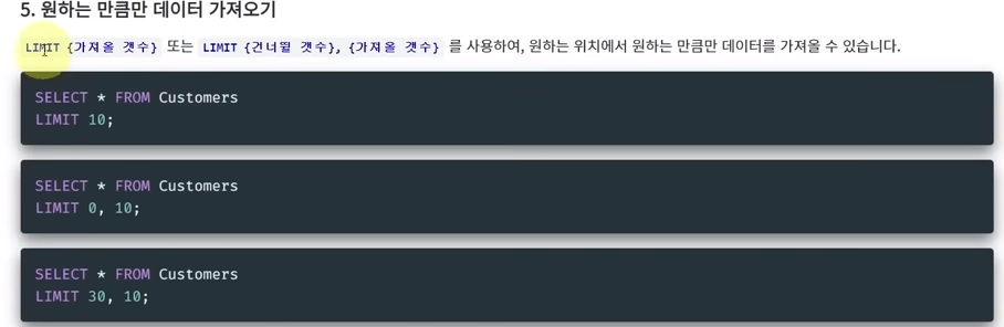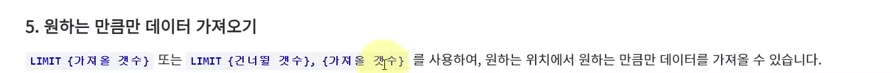 LIMIT과 가져올 갯수를 만들 수 있다.