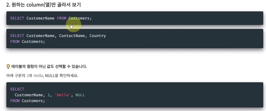 CustomerName은 컬럼의 이름. 컴퓨터가 알아봄.
