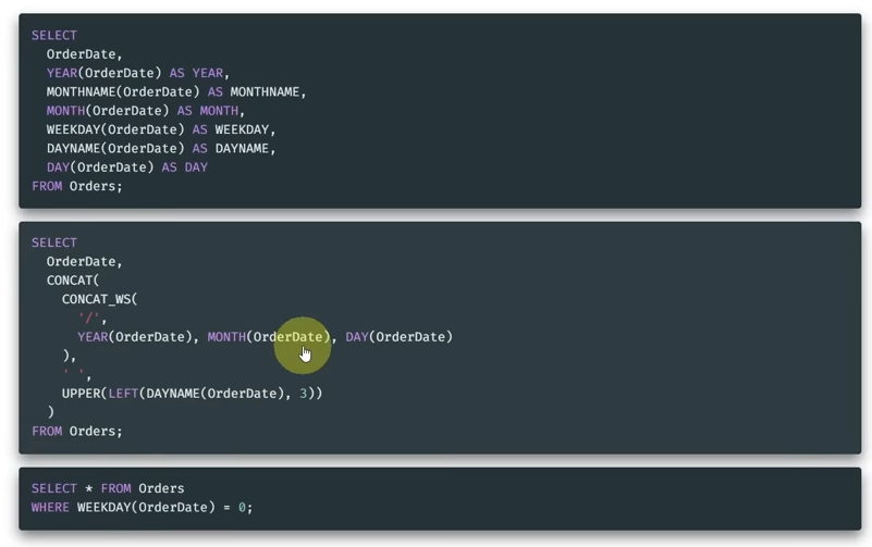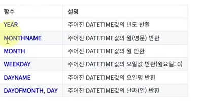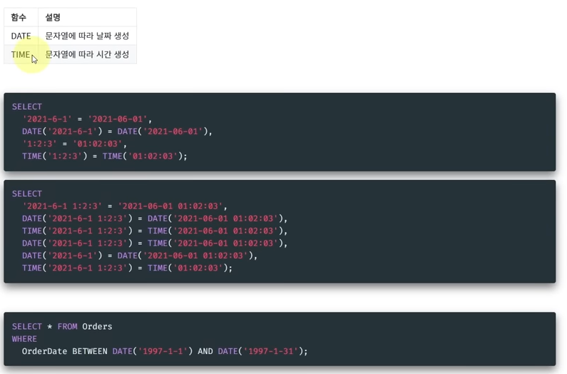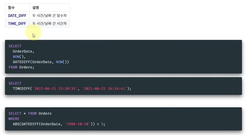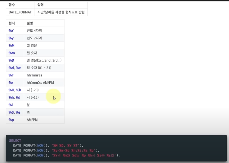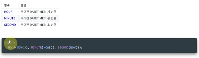 NOW는 앞의 두개 CURDATE, CURTIME을 포함함.