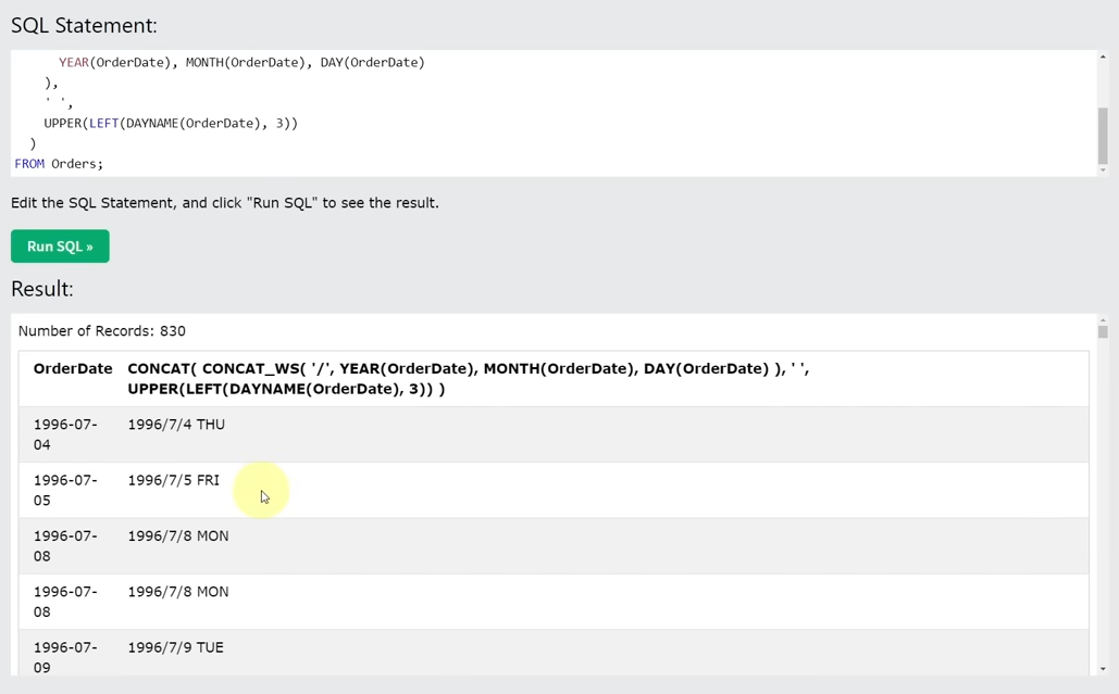요일정보를 LEFT함수로 붙임. 그리고 대문자로 바꿈.