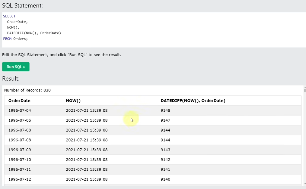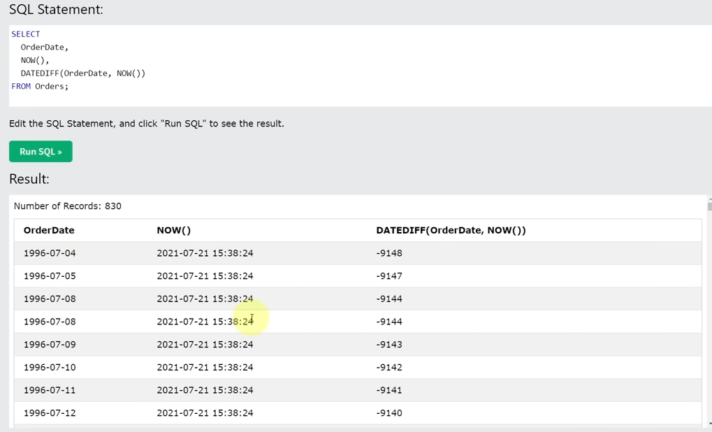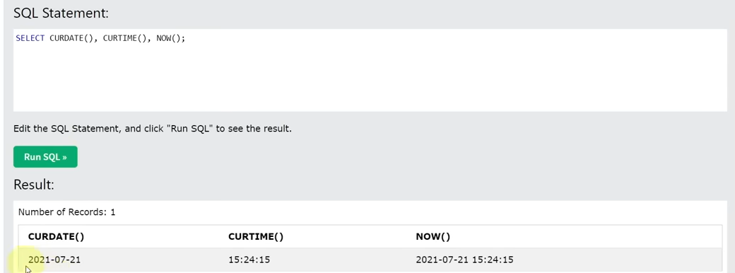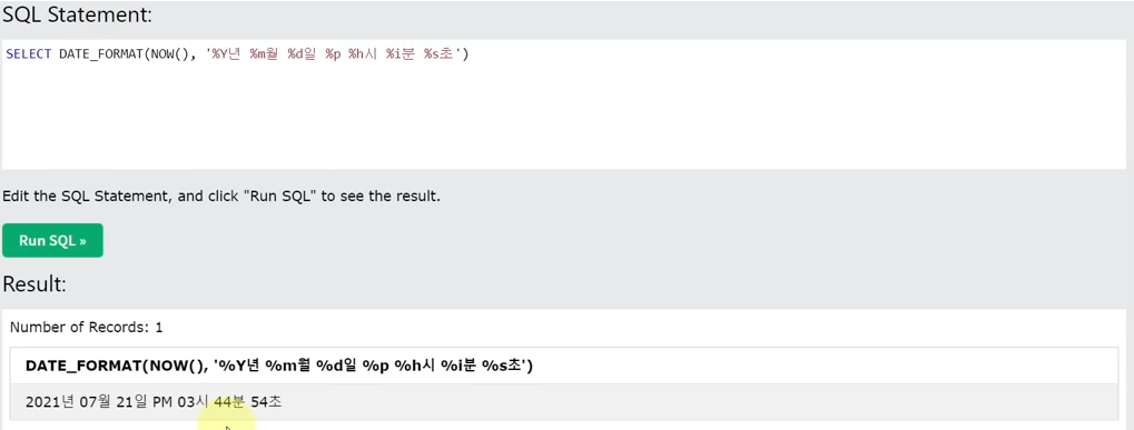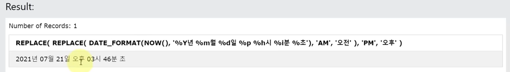 NOW를 하면 현재 날짜와 시간이 나옴.