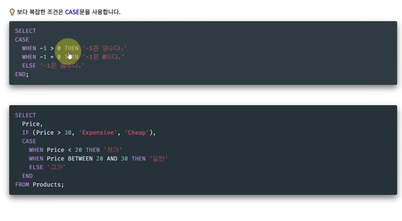 CASE로 시작해서 WHEN, 마지막으로 ELSE /END 를 한다.