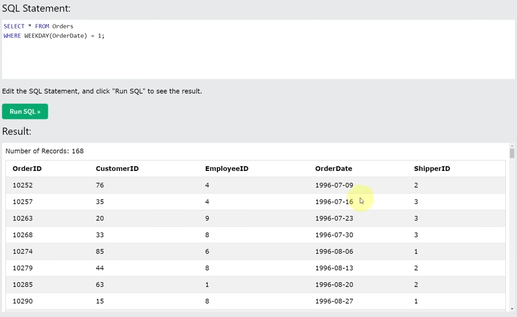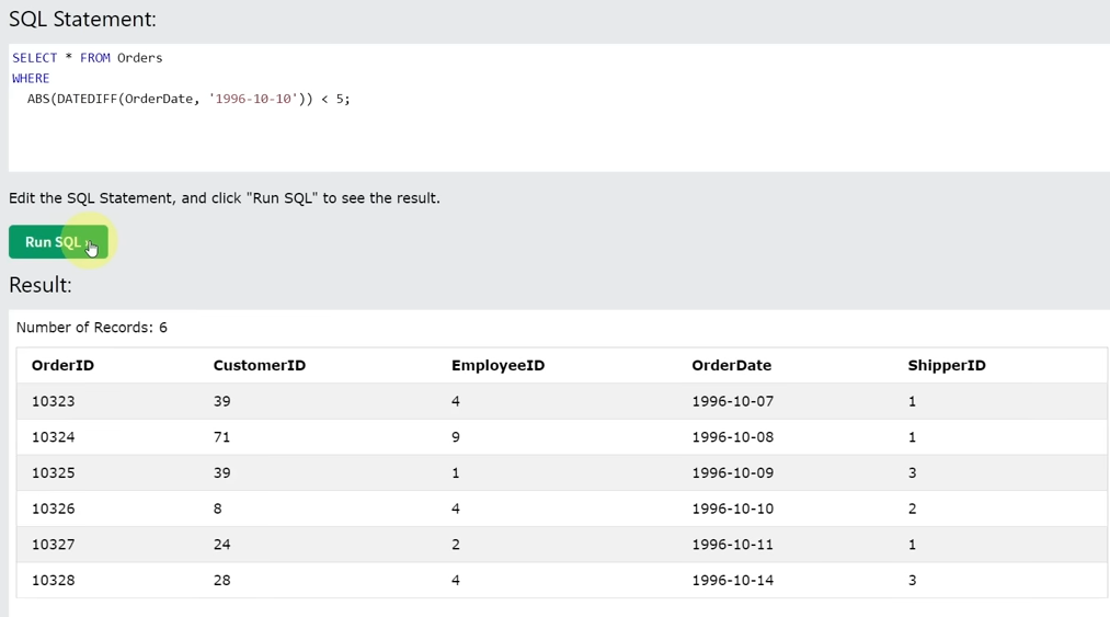 Between 연산자가 날짜에도 사용될 수 있음을 확인할 수 있음.