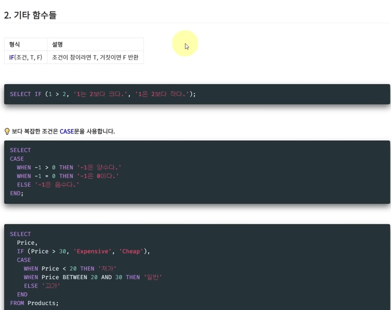 | (1-3) MySQL 데이터베이스 강좌 - 숫자와 문자열을 다루는 함수들 (0) | 2023.11.15 |