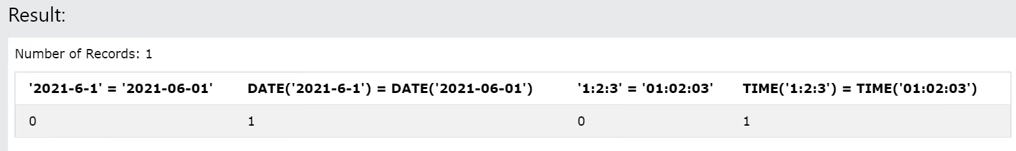 2) Date 함수 안에 넣으면, 날짜로 인식한다. 따라서 같다고 인식한다.