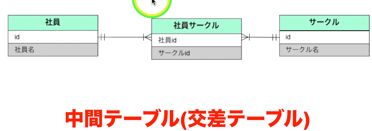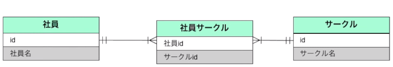 이번에는 사원과 서클 테이블이 있어서, 사원 1명이 복수의 서클에 소속할 수 있게 한다.