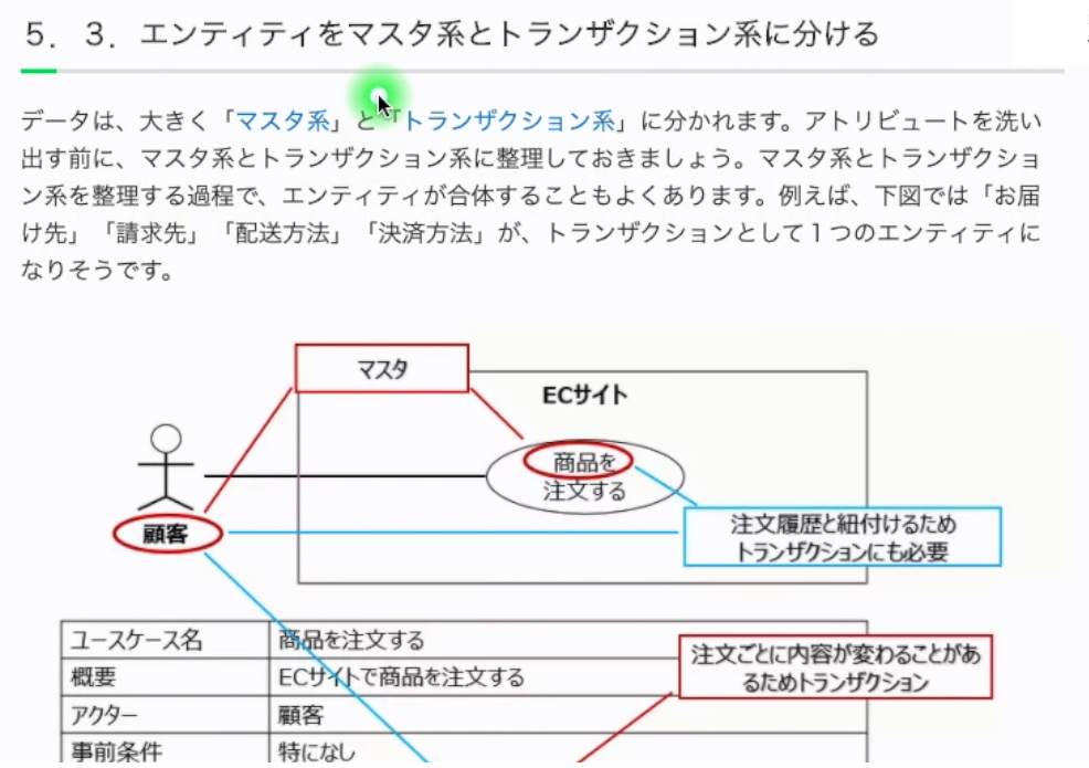 아마존과 같은 EC사이트는 상품테이블이라는 중요한 테이블을 마스터계라고 한다. 그리고 구입이력같은 흘러가는 테이블을 트랜잭션계라고 한다. 실제로 DB설계를 하는데 있어서 이건 마스터계구나, 이건 트랜잭션계구나라는 것은 별로 생각하지 않아도 된다.