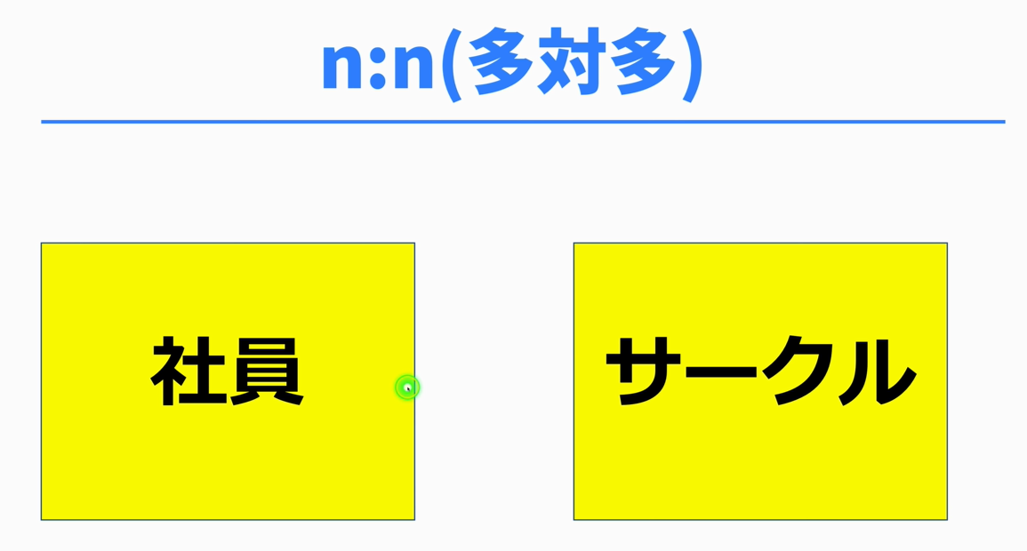 사원id와 서클id만을 가진 심플한 테이블이다. 이런 설계이면, 누군가가 서클에 들어갔을 때, 사원서클테이블에 1건의 데이터를 추가하면 되는 것이다. 사원은 여러 개의 서클에도 속할 수 있고, 서클에서도 몇명이라도 사원이 속할 수 있다. 그리고 쓸모없는 칼럼도 추가되지 않으므로, 아름다운 설계가 된다. 이와같이 n:n설계를 할 때에는, 중간에 테이블을 넣는게 이론적이다.