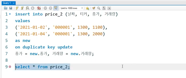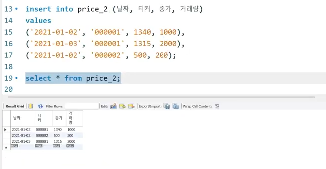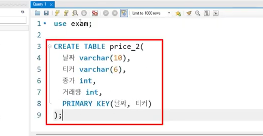 price 테이블에 저장